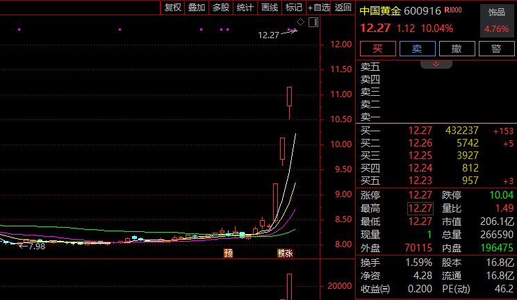 盘初,黄金概念持续走强,中国黄金(600916)4连板,湖南黄金(002155)3连板,招金黄金(000506)、豫光金铅(600531)、飞南资源(301500)、四川黄金(001337)、赤峰黄金(600988)跟涨。