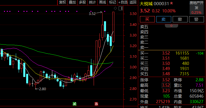 房地产板块盘初冲高,盈新发展(000620)、大悦城(000031)涨停,中洲控股(000042)、京能置业(600791)、合肥城建(002208)、万科A、新大正(002968)跟涨。